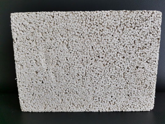 無機塑化微孔保溫板干密度在140kg/m³左右 ,抗壓強度≥0.40MPa,解決了材料的低密度和高強度自相矛盾的技術難題。
